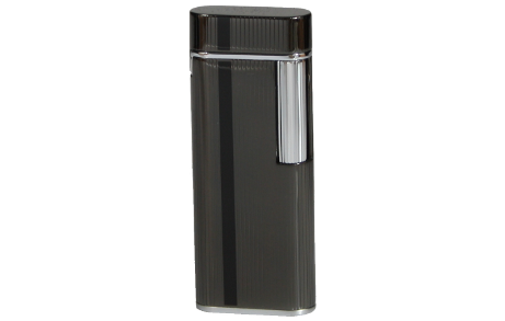 Neues Corona Pfeifenfeuerzeug mit schräger Pfeifenflamme. Steinzündung, nachfüllbar, in Gunmetall Black mit Balken.